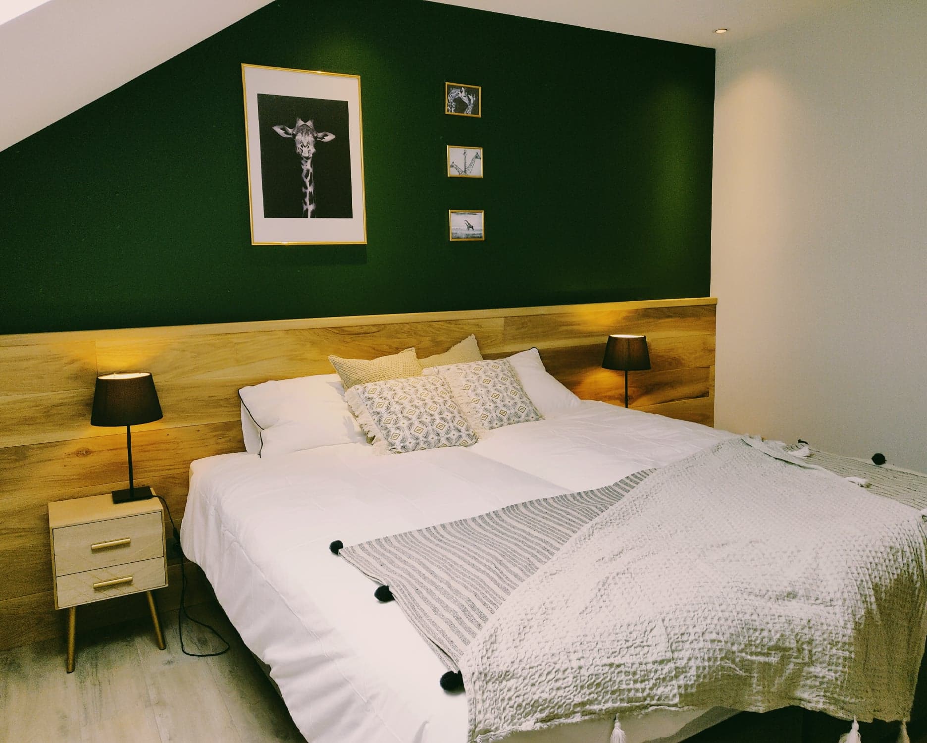 – Kamer 1 met 2 éénpersoonsbedden ;